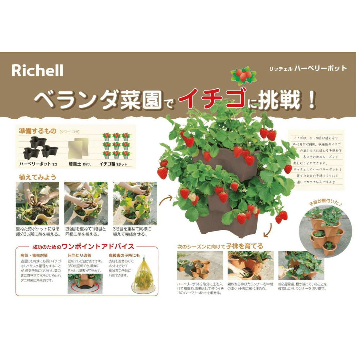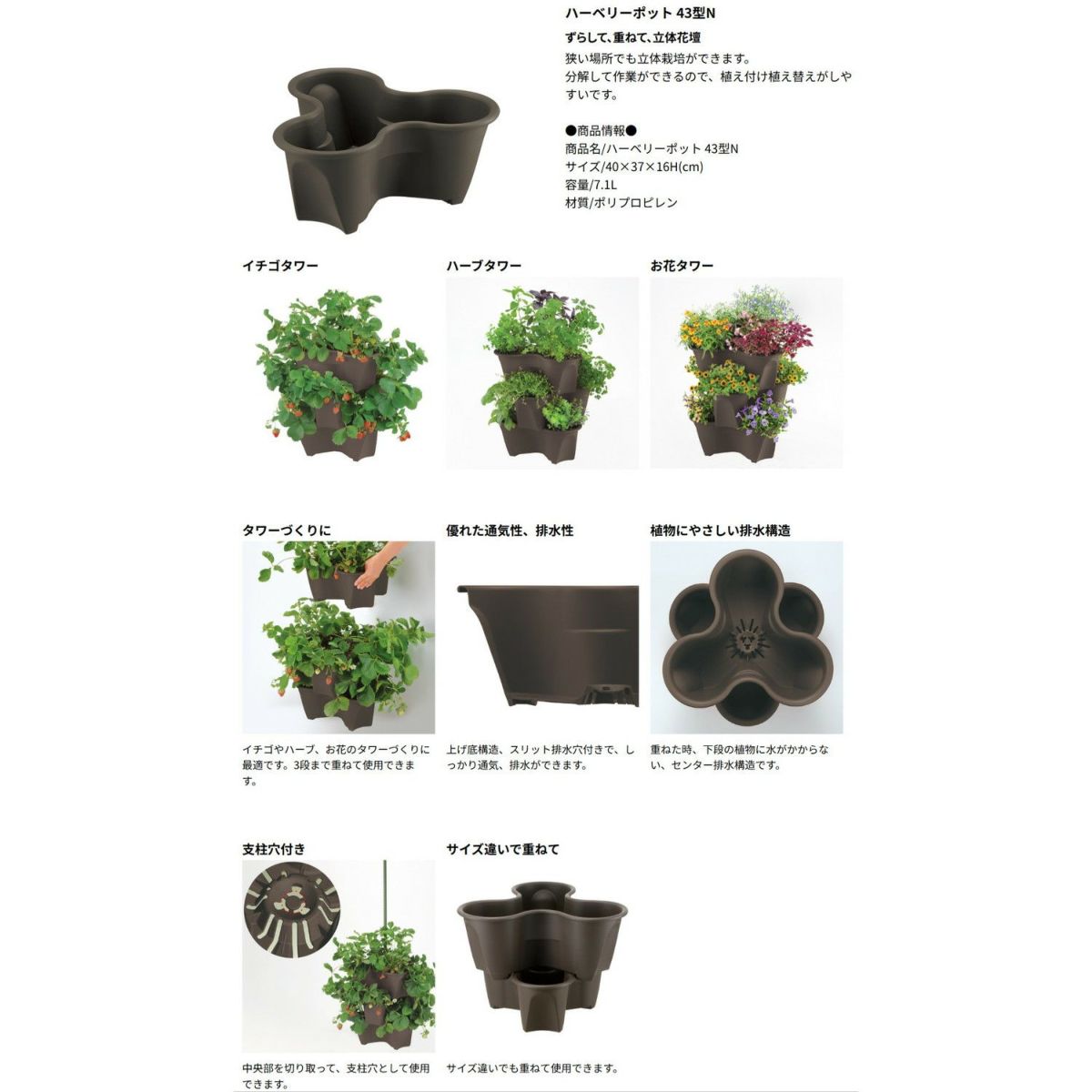 他の画像を見る いちごの栽培を狭い場所でも重ねて立体栽培ができるセットです。 【セットでお得】ハーベリーポット 43型N ダークブラウン+クロレラの恵みR いちごの土 7L 各3個セットリッチェル 40×37×高さ16cm 容量7.1L ガーデニング プランター 植木鉢 野菜 果樹 イチゴ 花 ベランダ おしゃれ かわいい 屋外 プラスチック 重ね置き可能 家庭菜園 定価 ¥ 1,815 のところ ¥ 4,846 税込 在庫切れ いちごの栽培を狭い場所でも重ねて立体栽培ができるセットやちゃ! 詳細を見る お気に入りに登録する