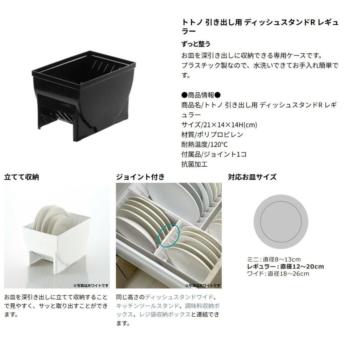 他の画像を見る ウェブショップ限定カラーのブラック。お皿を深引き出しに収納できる専用ケースです。 トトノ 引き出し用 ディッシュスタンドR ミニ ブラックリッチェル 皿 仕切り 食器 収納 ケース 縦 置き WEB限定カラー キッチン 引き出し シンク下 プラスチック 日本製 国産 定価 ¥ 880 のところ ¥ 880 税込 大人気のトトノの特別カラーやちゃ! カートに入れる お気に入りに登録する