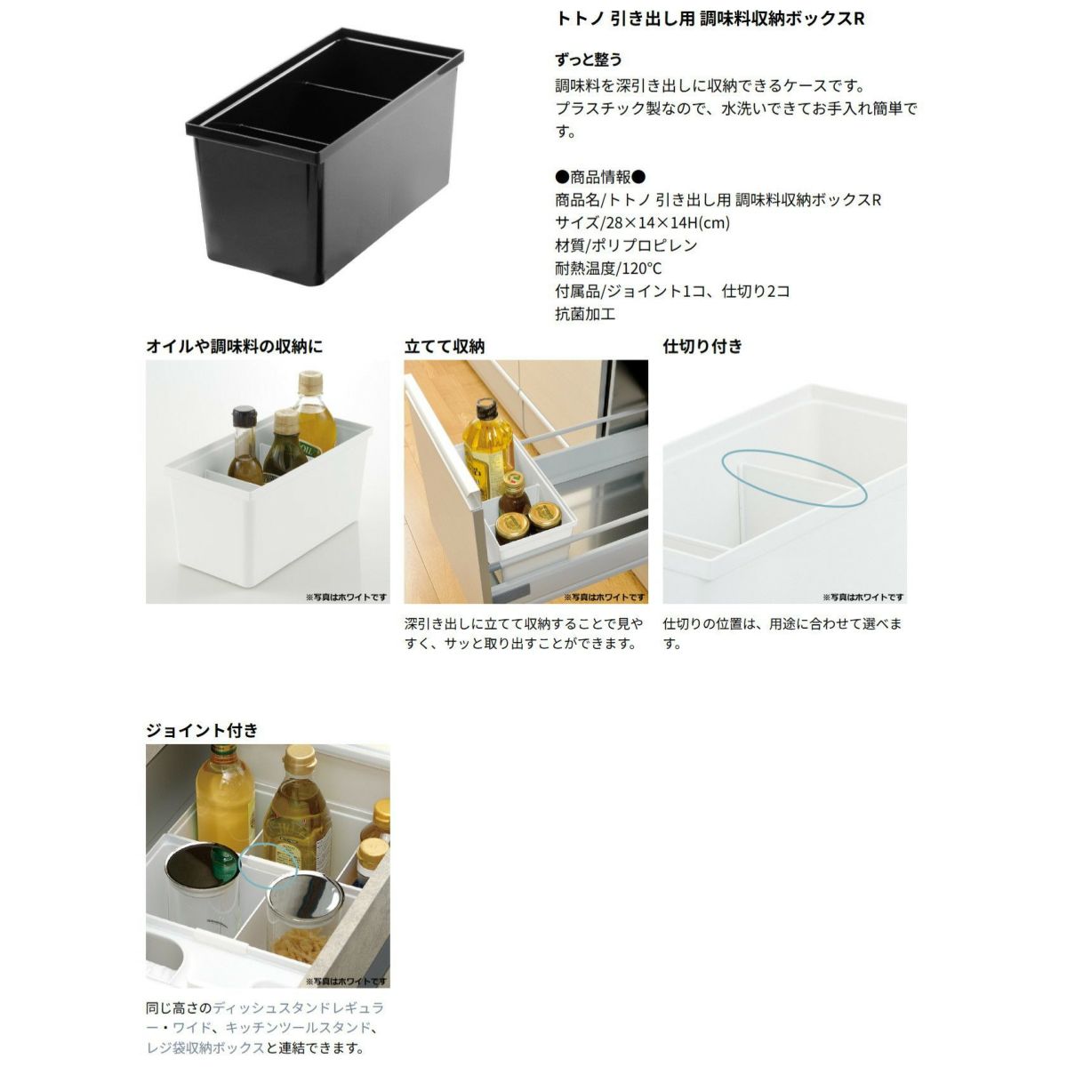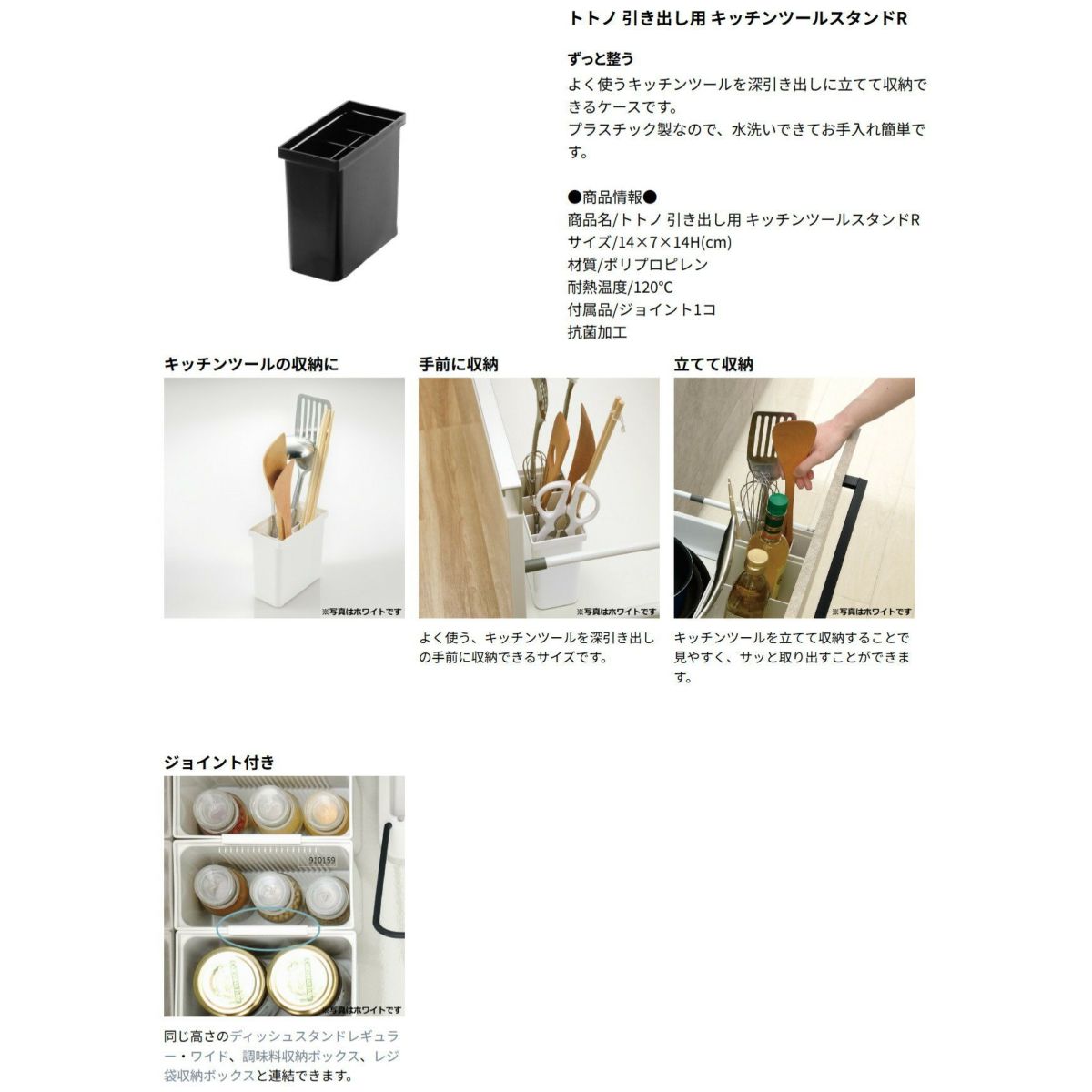 他の画像を見る ウェブショップ限定カラーのブラック。キッチンツールスタンドRと調味料収納ボックスRのセットです。 【セットでお得】トトノ キッチンツールスタンドR&調味料収納ボックスR 6点ブラック セットリッチェル WEB限定カラー キッチン 引き出し シンク 下 収納 プラスチック 日本製 国産 定価 ¥ 6,380 のところ ¥ 6,064 税込 大人気のトトノの特別カラーやちゃ! カートに入れる お気に入りに登録する