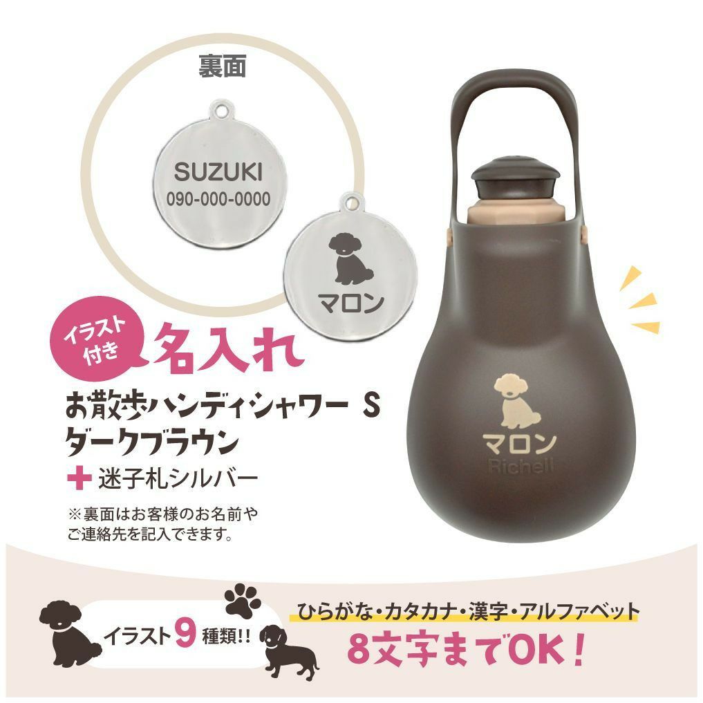 他の画像を見る 散歩時のエチケットの水分補給にも便利なハンディシャワーと万が一の時のための迷子札のセットです。 【名入れ】お散歩ハンディシャワー S ダークブラウン 名入れ + 迷子札20mm銀 名前入り メタル 金属 メダル 名前札 ネームプレート ペット 犬 散歩 ギフト プレゼント リッチェル ¥ 2,565 税込 大好きなワンちゃんのお散歩グッズに名入れ出来ちゃうオリジナルギフトだよ カートに入れる お気に入りに登録する