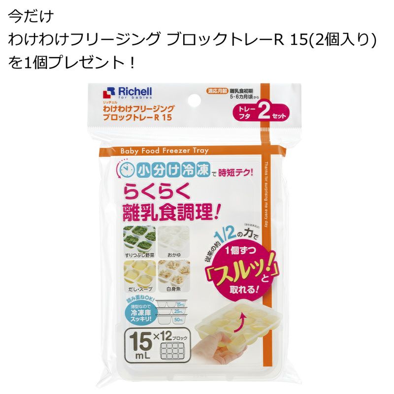 他の画像を見る 作り置きに便利な離乳食用小分け冷凍トレーです。 【セットでお得】【数量限定おまけ付き】わけわけフリージング ブロックトレー R15/R25 4個入り×2サイズセット リッチェル 離乳食 冷凍 冷蔵 保存 容器 ケース 小分け パック 電子レンジ対応 薄型 食洗機・煮沸消毒・薬液消毒OK 積み重ね可能 フタ付き 作り置き 定価 ¥ 2,200 のところ ¥ 1,958 税込 在庫切れ 作り置きに便利な小分け冷凍トレーやちゃ! 詳細を見る お気に入りに登録する